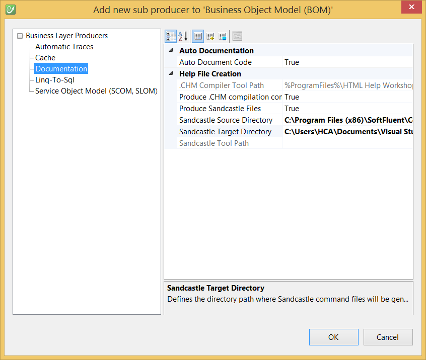 Note: the only required property is the “Sandcastle Target Directory“ which needs to be specified so the producer knows where to generate its output files.