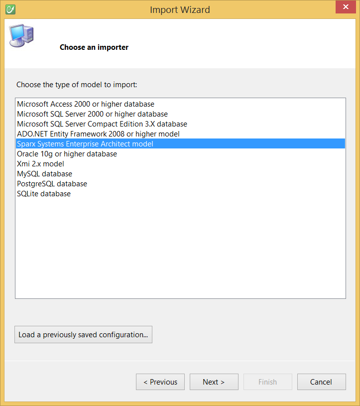 - Use the Sparx Systems Enterprise Architect importer.