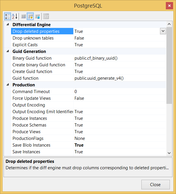 The PostgreSQL Producer is a persistence code generator: it translates a CodeFluent Entities model into a database running on PostgreSQL Server 8.4 and upper. The database is created by generating SQL scripts which are then automatically ran on the configured server.
