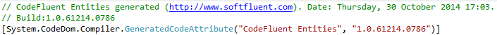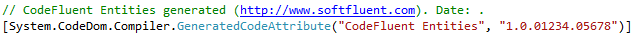 The generated file does not contains date and the CodeFluent Entities version number this 1.0.01234.05678: