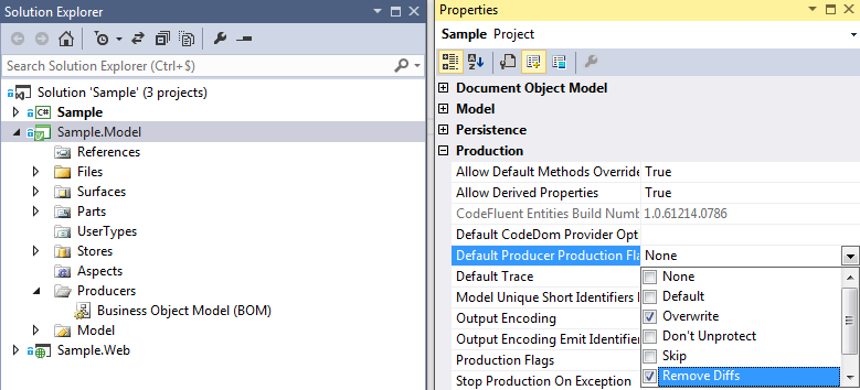 Note: If you use local workspaces, Visual Studio does not check a file out when the file content does not change. With the remove diffs option, when your model does not change, no file are checked out.